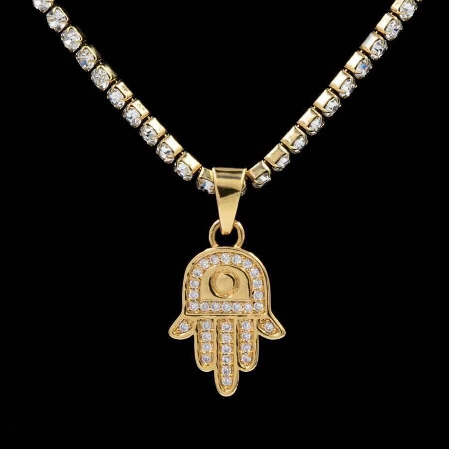 The Hamsah Necklace Charm is detailed with CZ Stones and can be worn with a Women’s Choker Necklace or a Micro Cuban. The Hamsah is a protective sign and brings its owner happiness, luck, health and good fortune. This is a piece that everyone should wear.