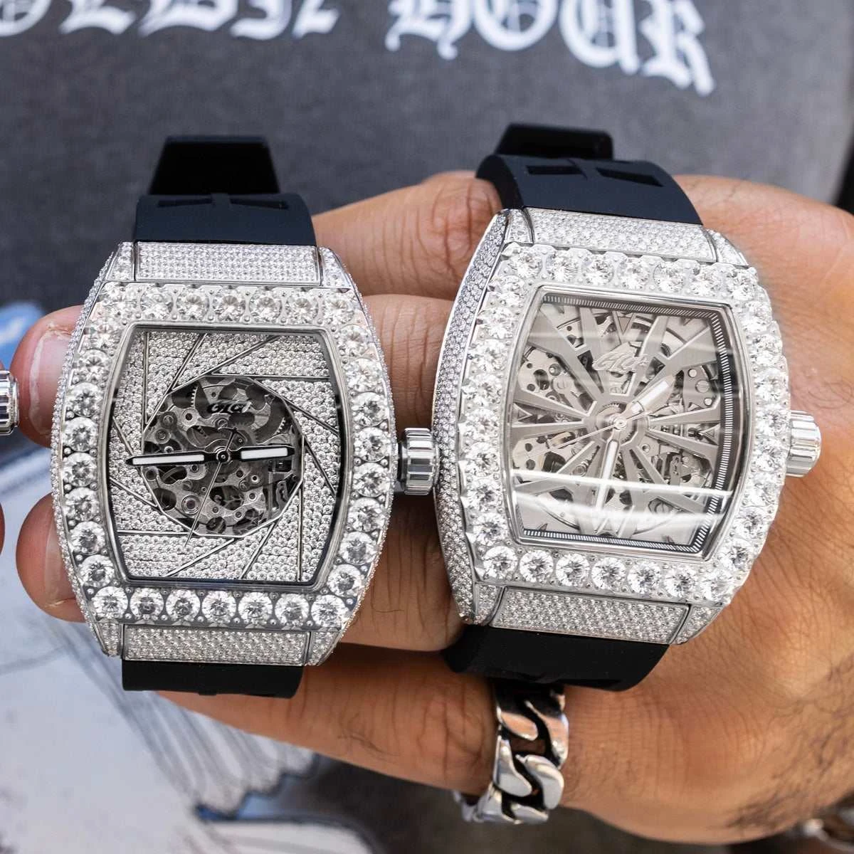 – The Iced watches contain over 1000 hand set stones