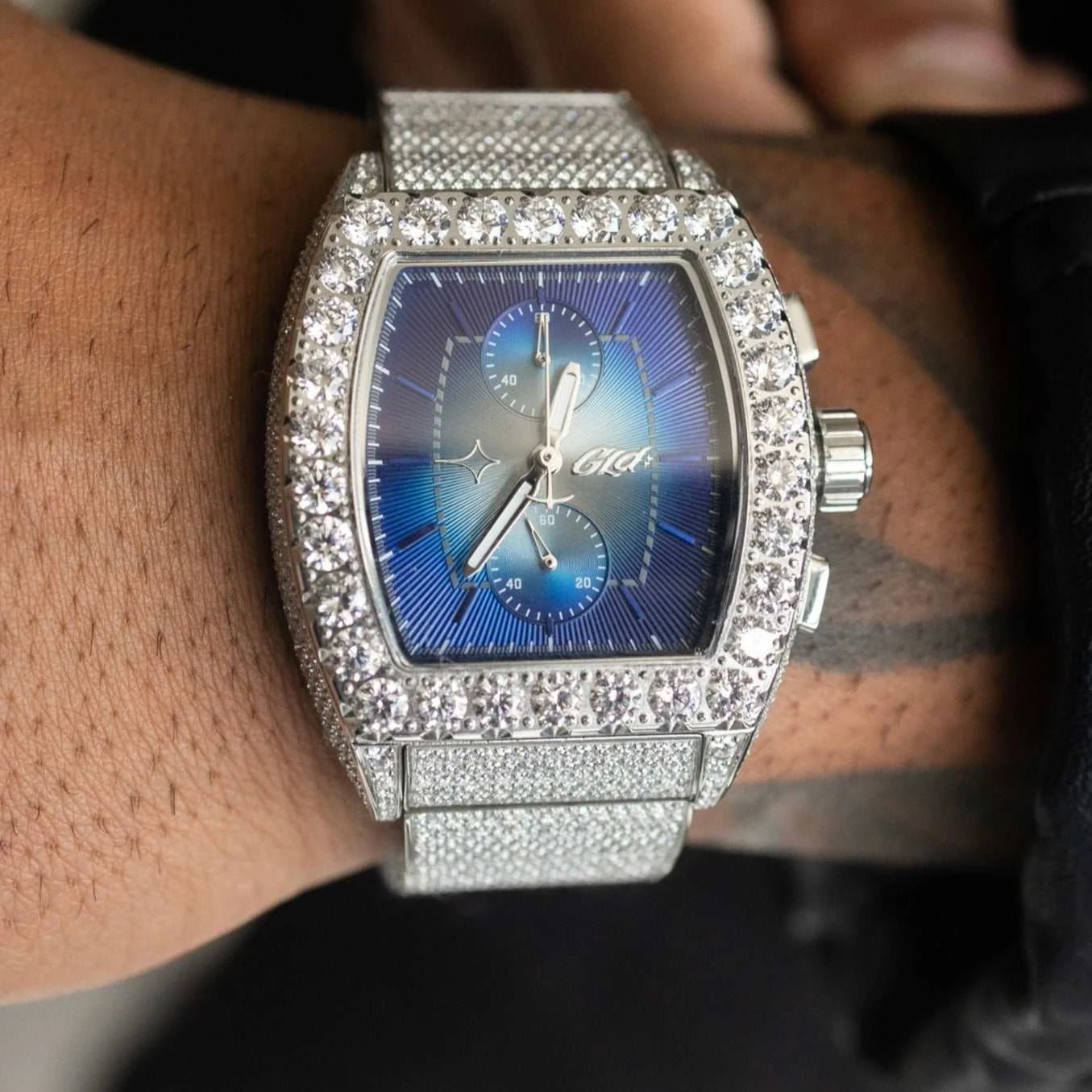 Introducing our Perennial Era Watch made of surgical grade steel and high quality materials. Our Perennial collection has a patented design exclusive to GLD with the sweeping chronograph movement, it also includes over 2,000 hand set stones with a patented setting style that maximizes shine. When you’re rocking this piece you will be sure to turn heads, wear it alone for a more casual look or match it with our 5 Layer Diamond Band Ring and a 3mm Tennis Necklace in white gold to rock a fully iced out look.