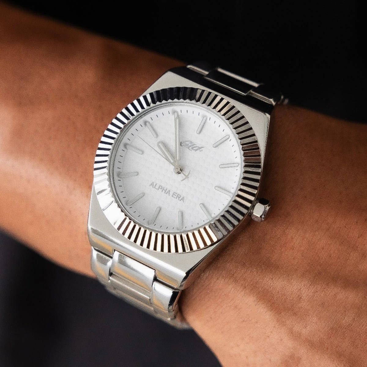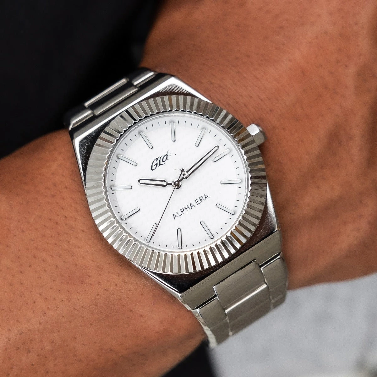 It’s your time! Introducing the Fluted Bezel Alpha Era in White Gold, a classic addition to our exclusive GLD watches. This 316L Stainless Steel watch features a 42mm case, stainless steel band, white analog dial and roman numeral indices. Wear it as an everyday piece, this watch will upgrade your look day or night!