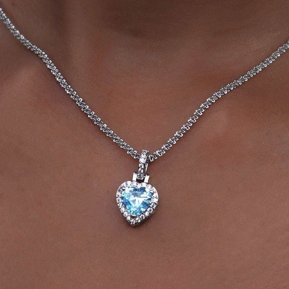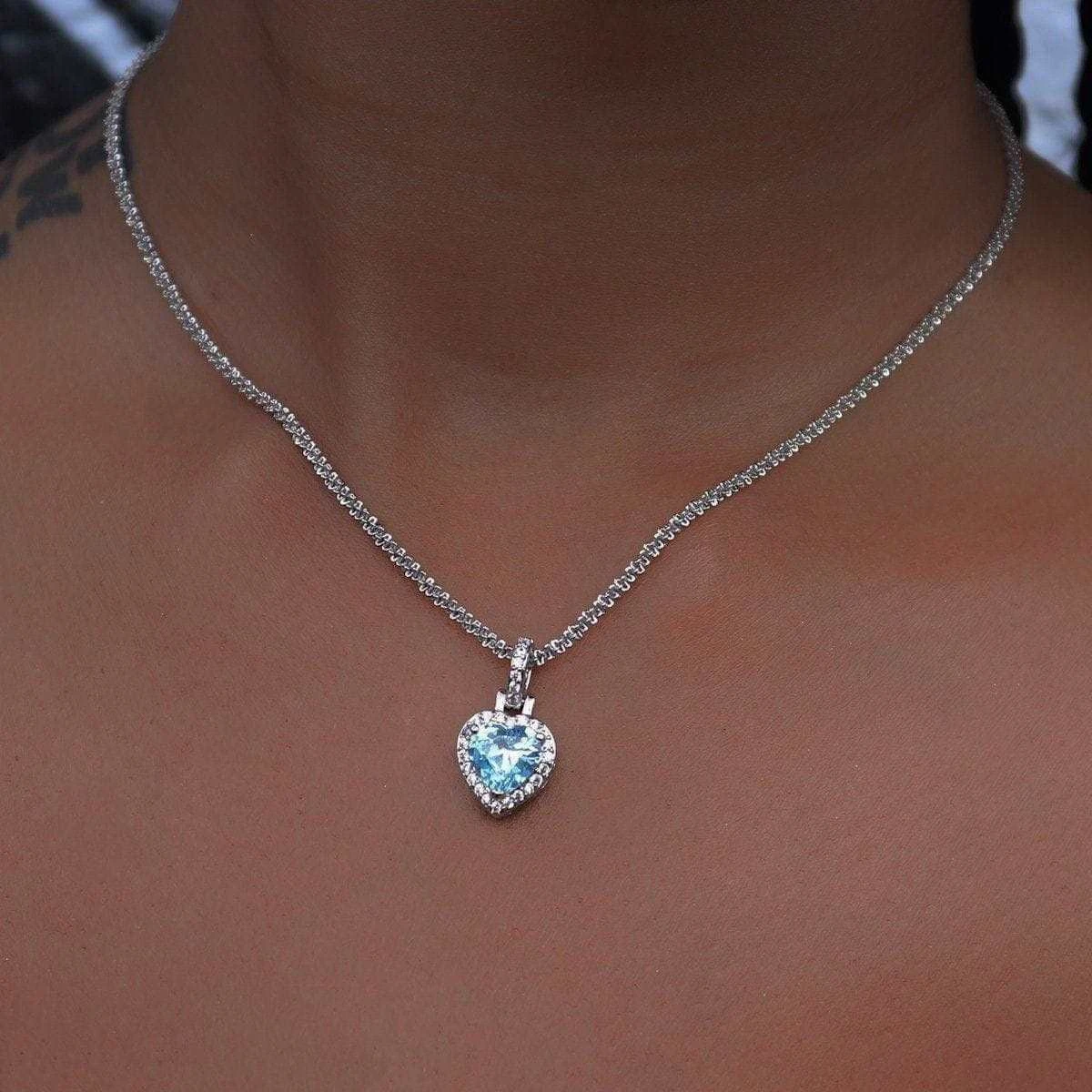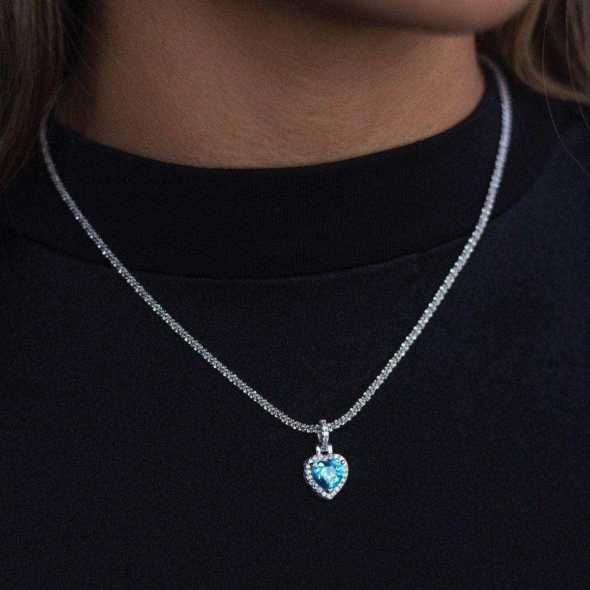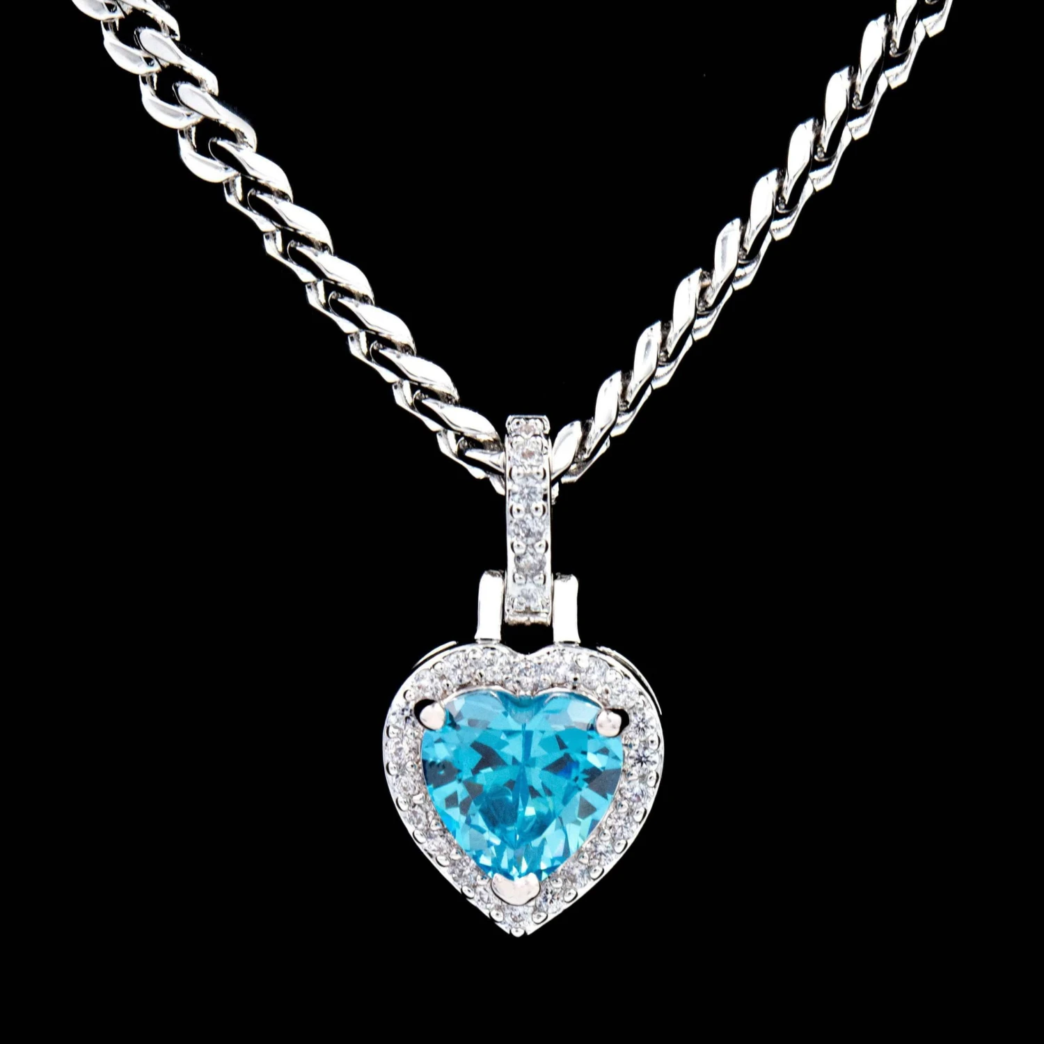 The Blue Iced Heart pendant features a large CZ heart shaped stone surrounded smaller round cut stones, ensuring an unparalleled shine from all angles.