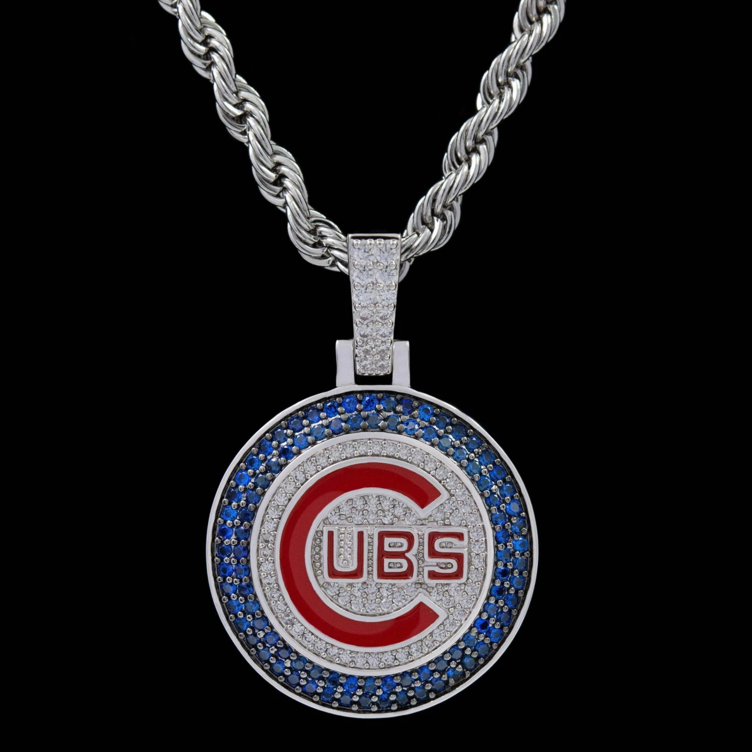 GLD has teamed up with the MLB to introduce the official MLB Team Pendants. This piece was meticulously crafted with blue and clear hand-set stones to accurately depict the logo of the Chicago Cubs. Rep your squad with the official logo pendant of the Chicago Cubs!