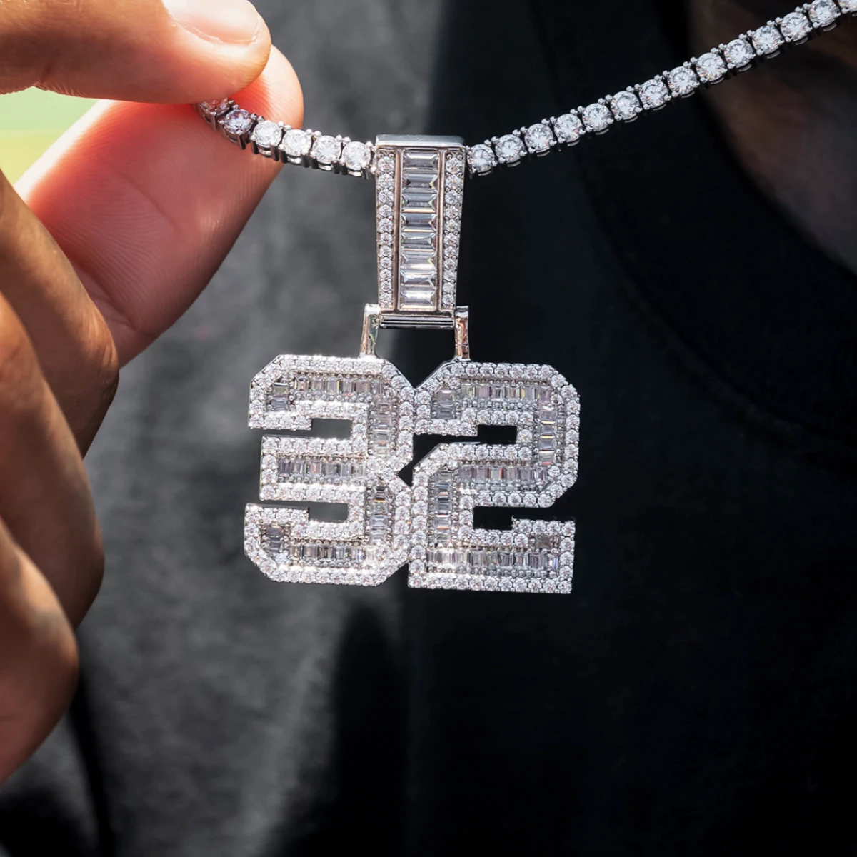 Introducing the Iced Number Baguette Pendant- the latest addition to our customs collection. Choose any number in 18k Yellow Gold or 14k White Gold and create your personalized iced out custom crafted with hand-set stones. Select any single or two digit number that holds a special meaning to you. Make a statement and elevate any look with this unique piece, only at GLD!