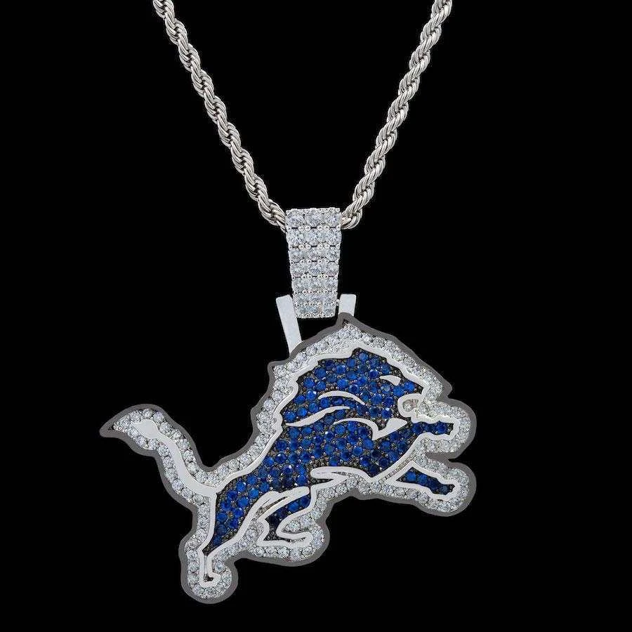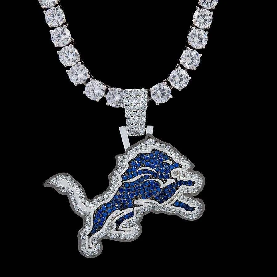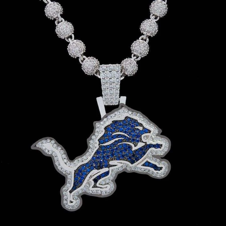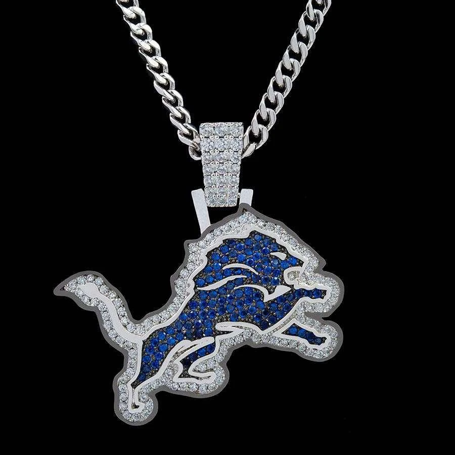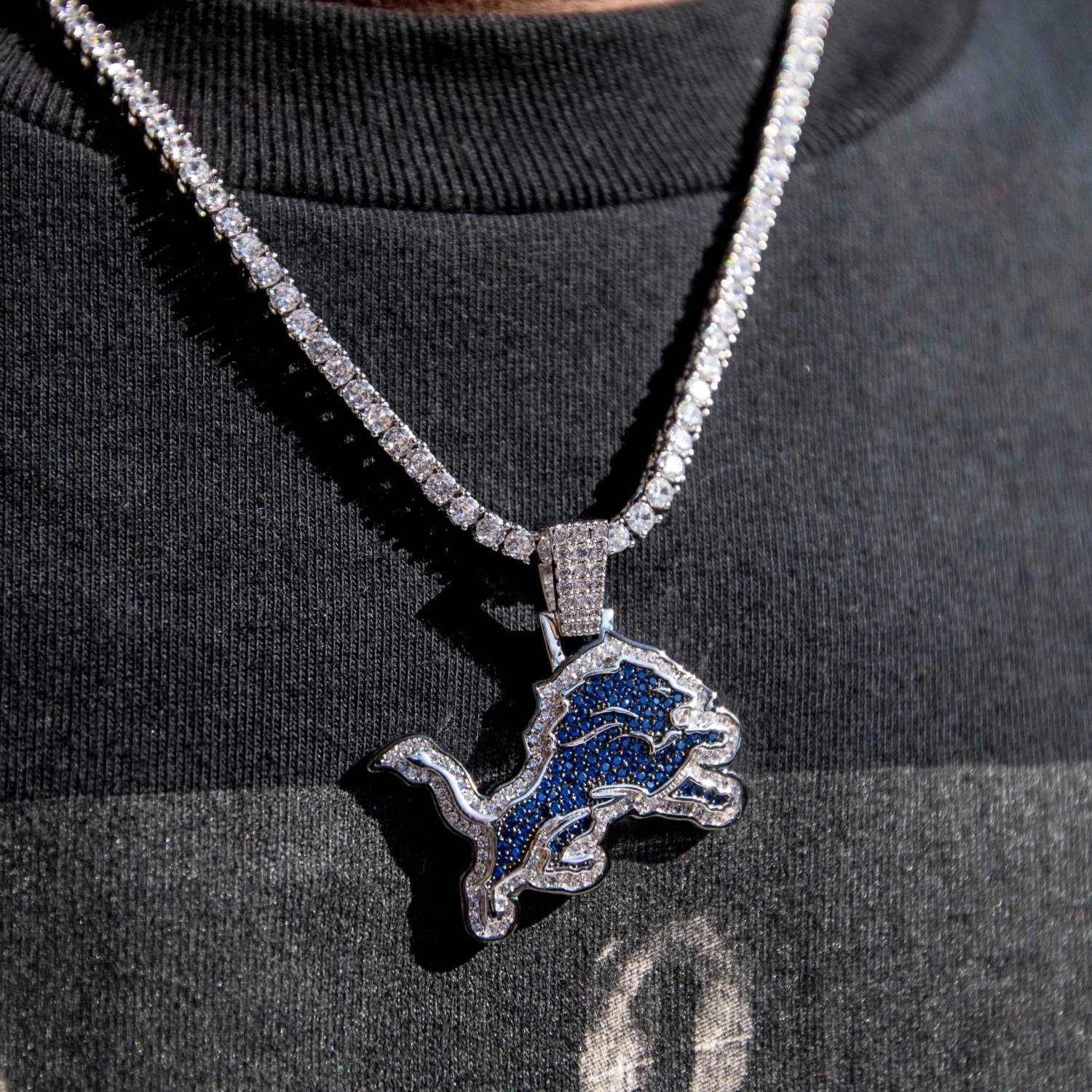 GLD has teamed up with the National Football League to introduce the official NFL Team Pendants. This piece was meticulously crafted with blue and clear hand-set stones to accurately depict the logo of the Lions. Flex this NFL season with the official pendant of the Detroit Lions.