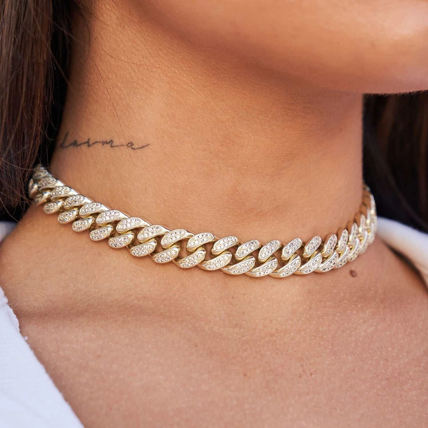 – (1) Diamond Cuban Link Choker in Yellow Gold – 12mm