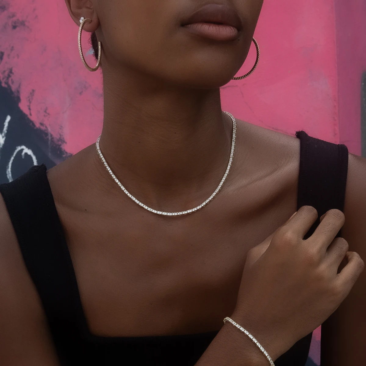 Why not get both? Score the Round Cut Tennis Necklace and Bracelet- 2mm as a bundle, the perfect blend of simplicity and ultimate shine. Featuring a row of hand-set stones, plated in 18k Yellow Gold and finished with our signature GLD clasp, wear it for any occasion to take your outfit to the next level!