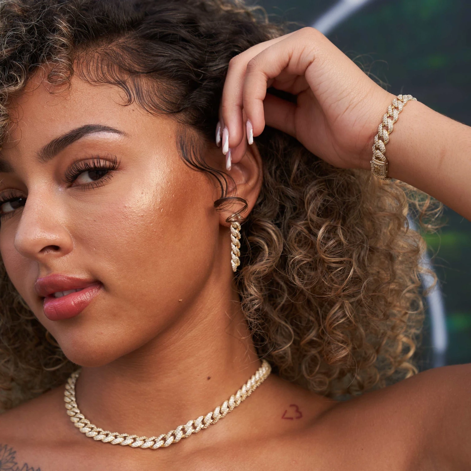 Introducing the prong stud earrings, inspired by the best selling 8.5mm diamond cuban necklace. This piece features six iced-out links that drape down. Paired with the 8.5mm iced cuban necklace and bracelet, they make a flawless matching amazing set.