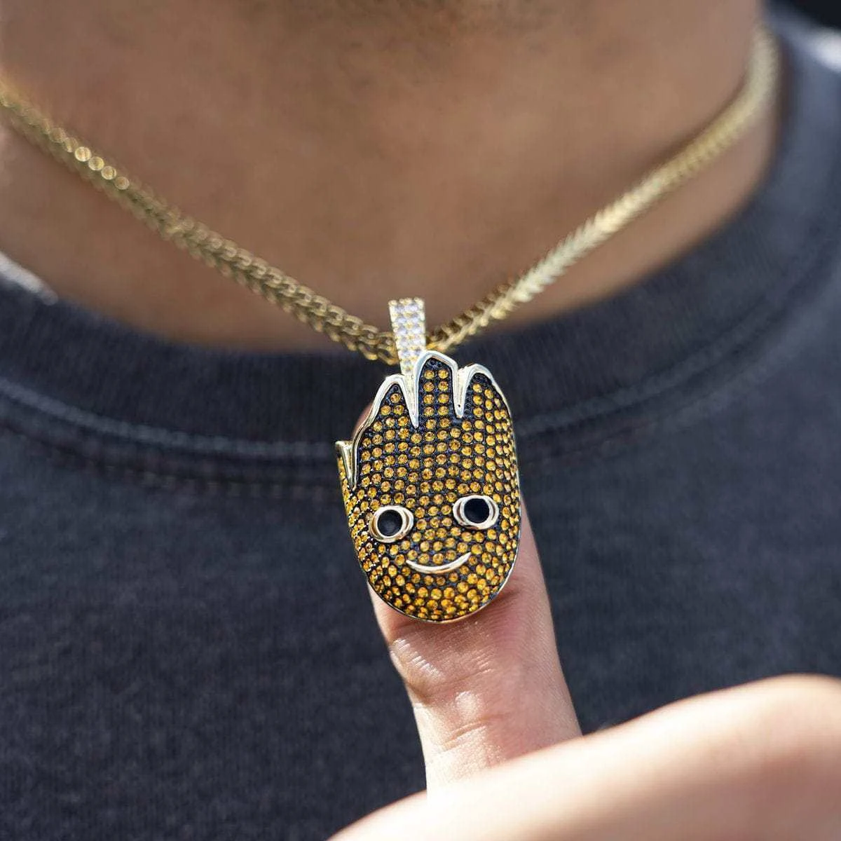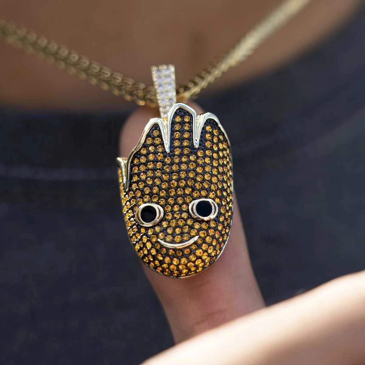 Introducing our “Groot Pendant” in collaboration with Marvel, this piece is crafted with yellow and black hand-set stones and enamel to accurately depict the iconic face of Groot. As most Marvel fans would know Groot is a legend , featured in movies like Avengers and Guardians of the galaxy. Groot is a lovable character and loyal friend, rock him on your favorite chain or gift to a big Marvel fan!