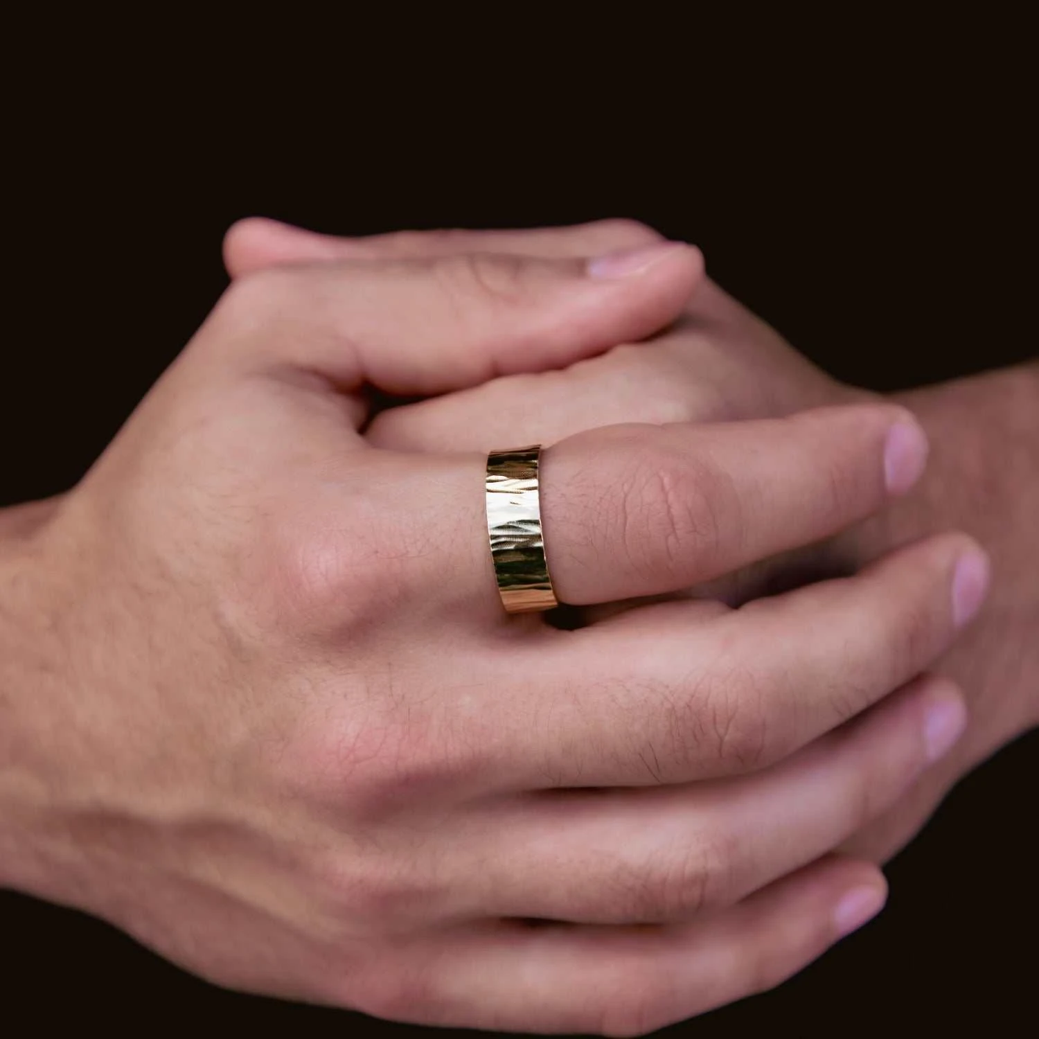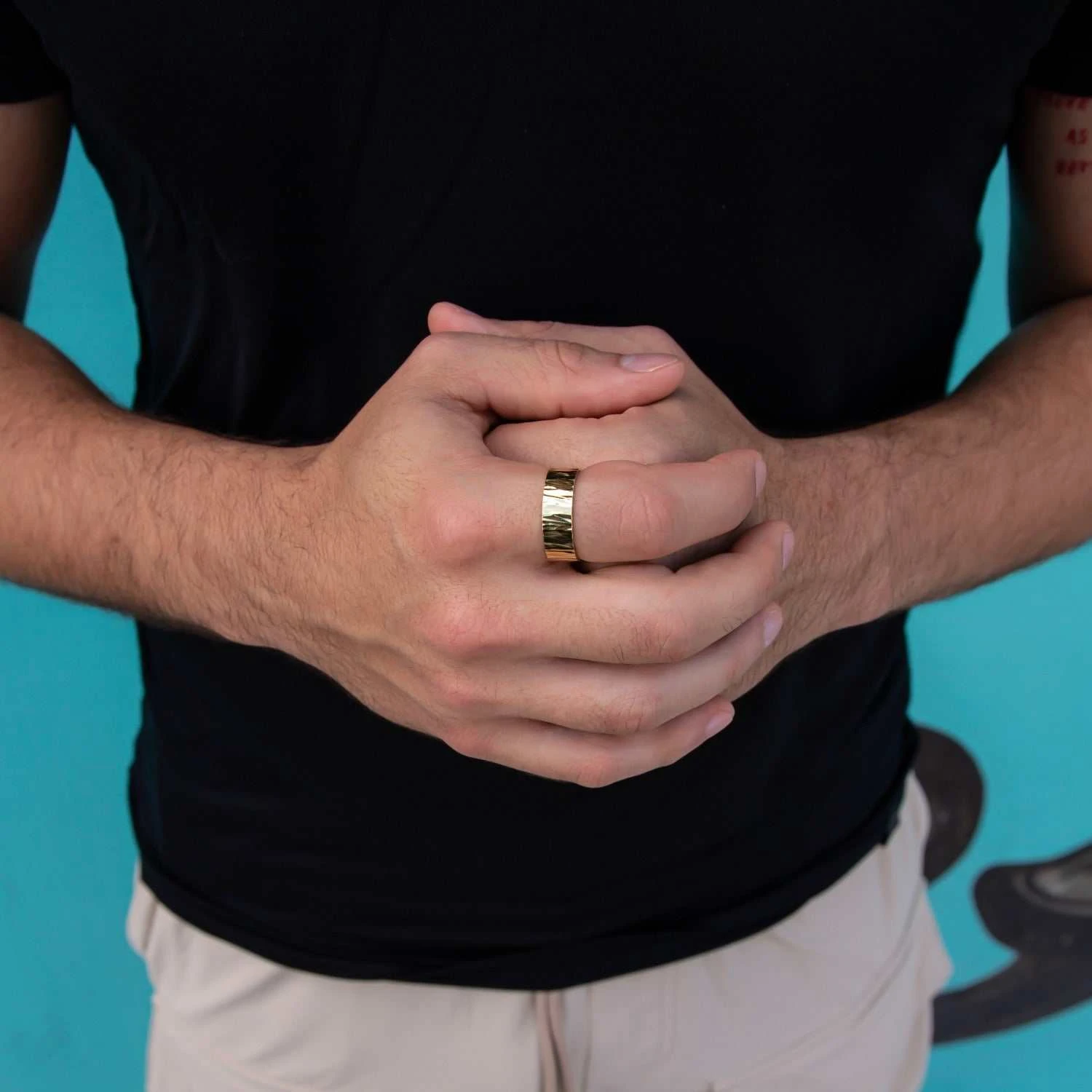 Introducing the Hammered Ring, this classic planished style ring provides unique character that flatters and compliments your fit. This 18k Gold Plated Ring features a wavy texture that is sure to be a stand out piece in your jewelry collection.