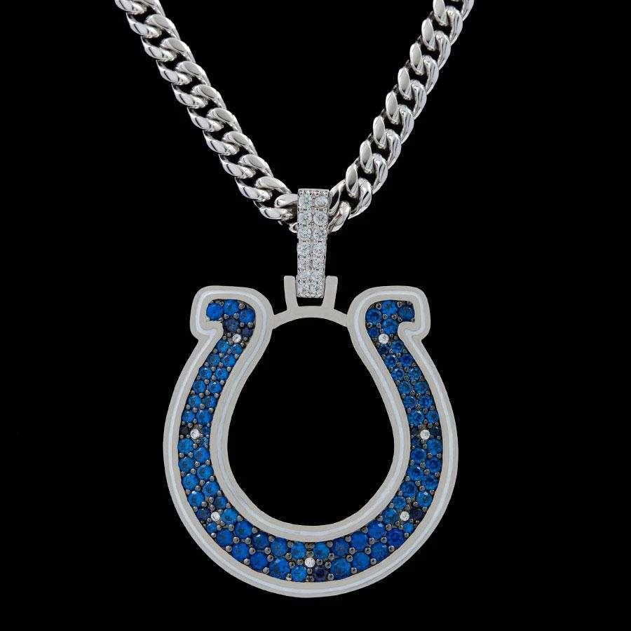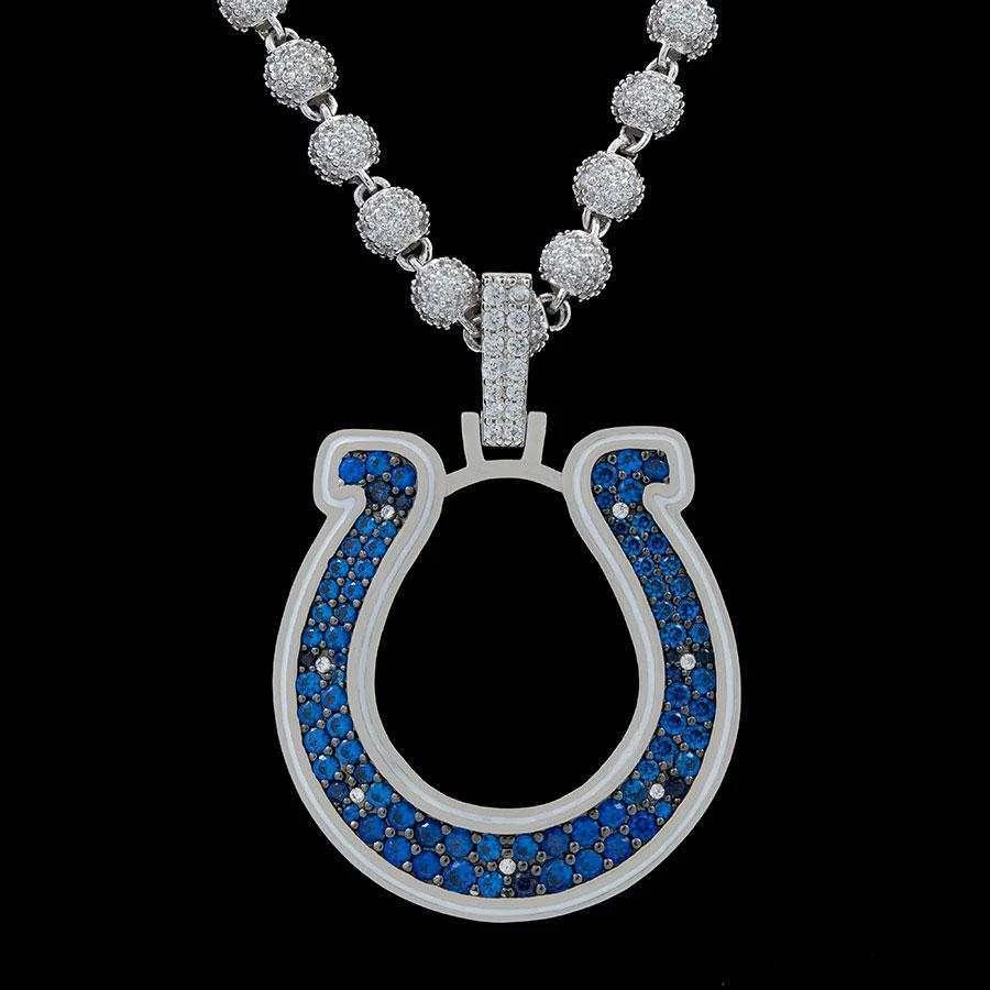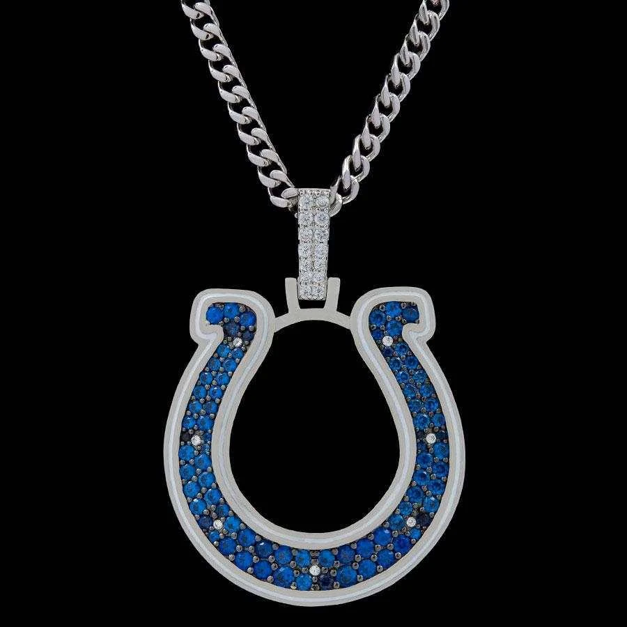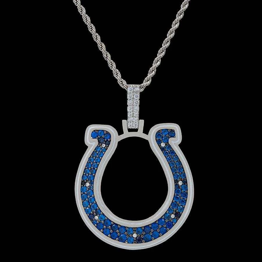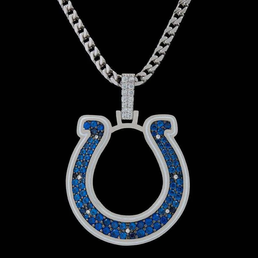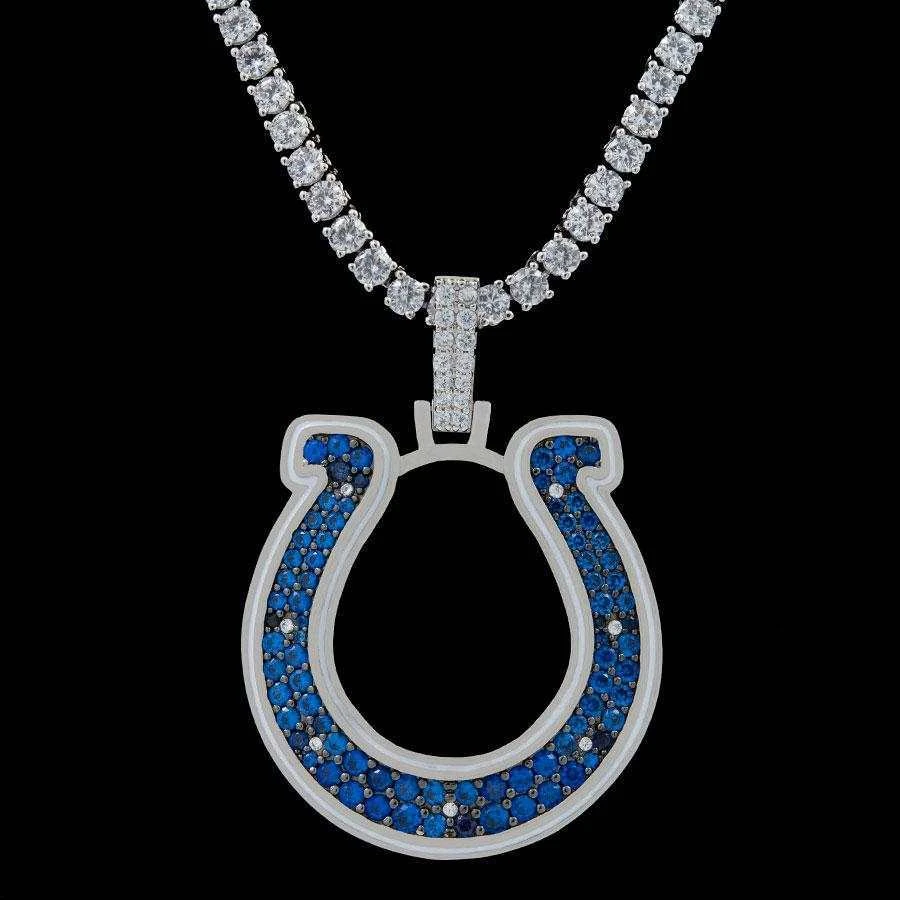 GLD has teamed up with the National Football League to introduce the official NFL Team Pendants. This piece was meticulously crafted blue hand-set stones to accurately depict the logo of the Indianapolis Colts. Flex this NFL season!.