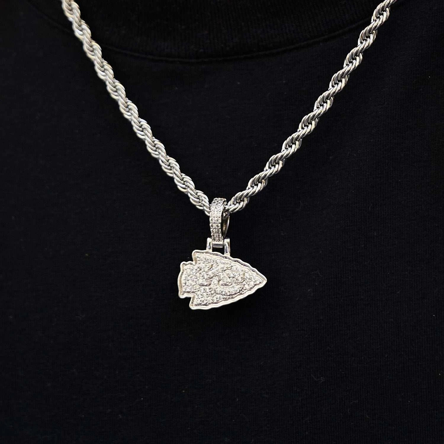 GLD has teamed up with the National Football League to introduce the official NFL Micro Logo Pendants. This piece was meticulously crafted with 14k white gold and clear hand-set stones to accurately depict the logo of the Chiefs. Flex this NFL season with the official pendant of the Kansas City Chiefs.