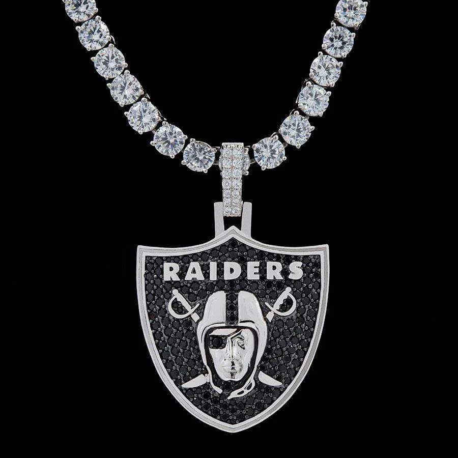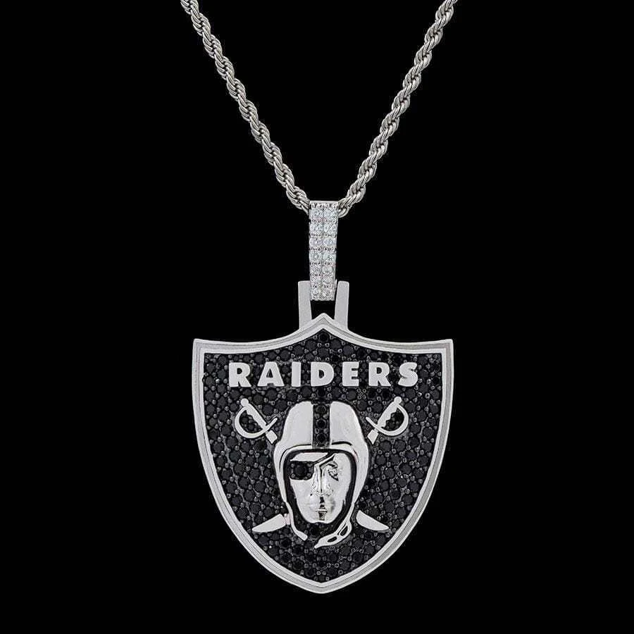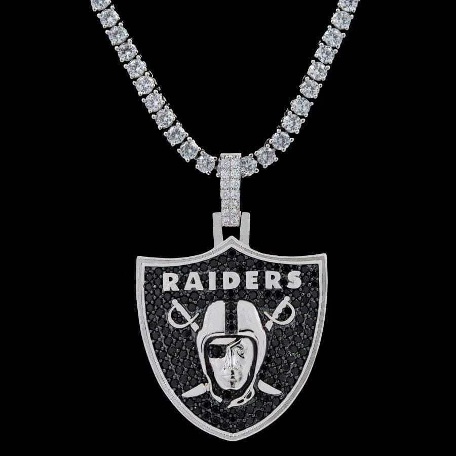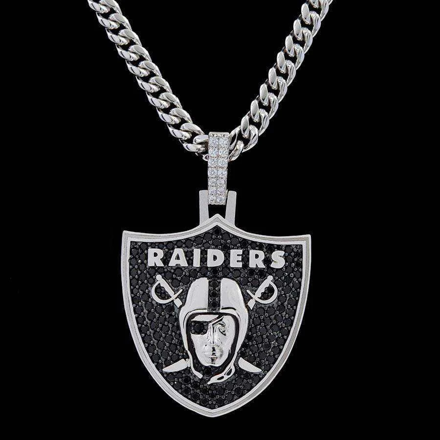 GLD has teamed up with the National Football League to introduce the official NFL Team Pendants. This piece was meticulously crafted with black hand-set stones to accurately depict the logo of the Raiders. Flex this NFL season with the official pendant of the Las Vegas Raiders.