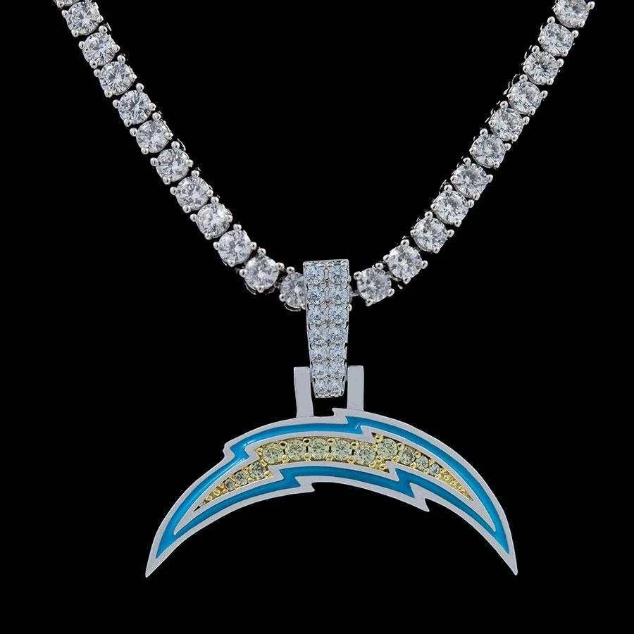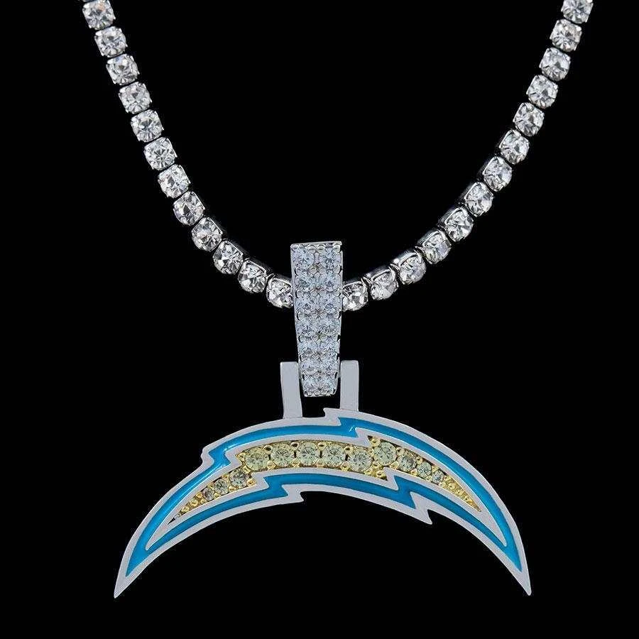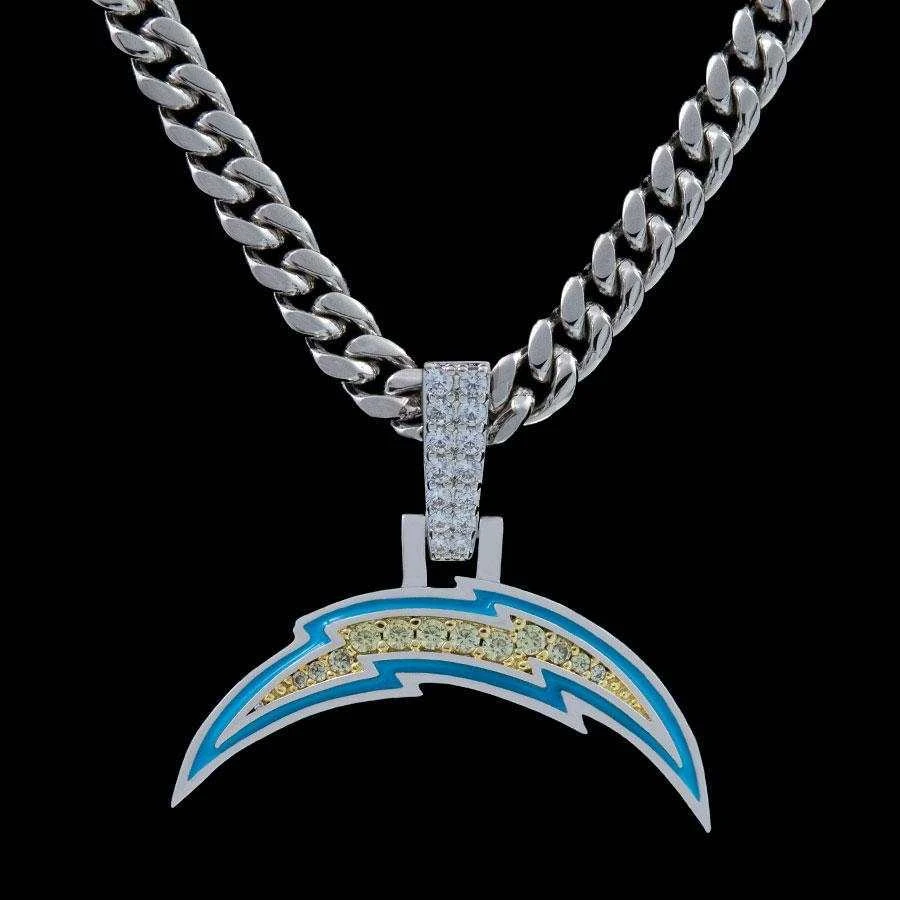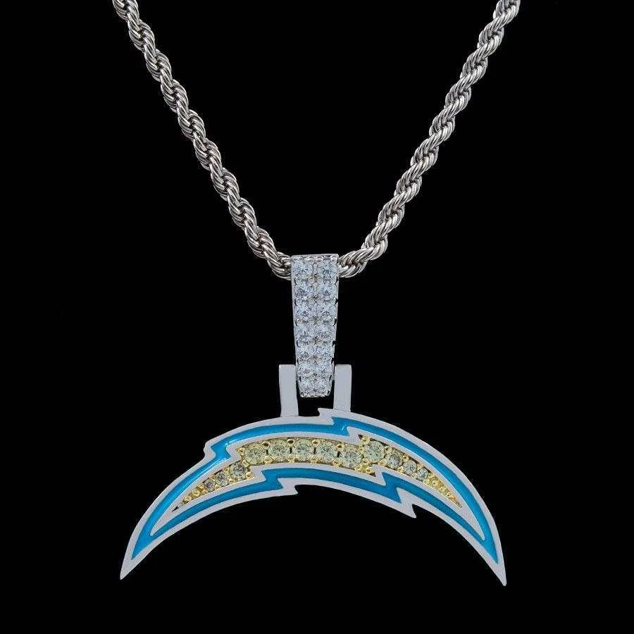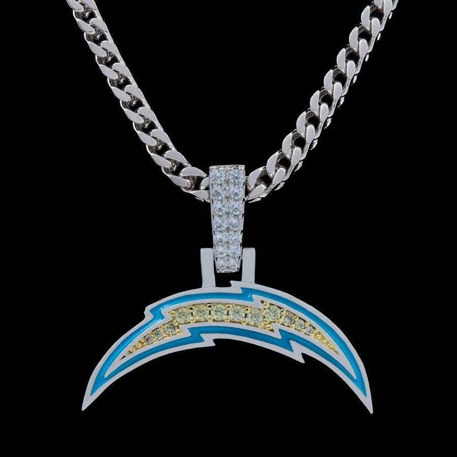 GLD has teamed up with the National Football League to introduce the official NFL Team Pendants. This piece was meticulously crafted with yellow hand-set stones and blue enamel to accurately depict the logo of the Chargers. Flex this NFL season with the official pendant of the Los Angeles Chargers.