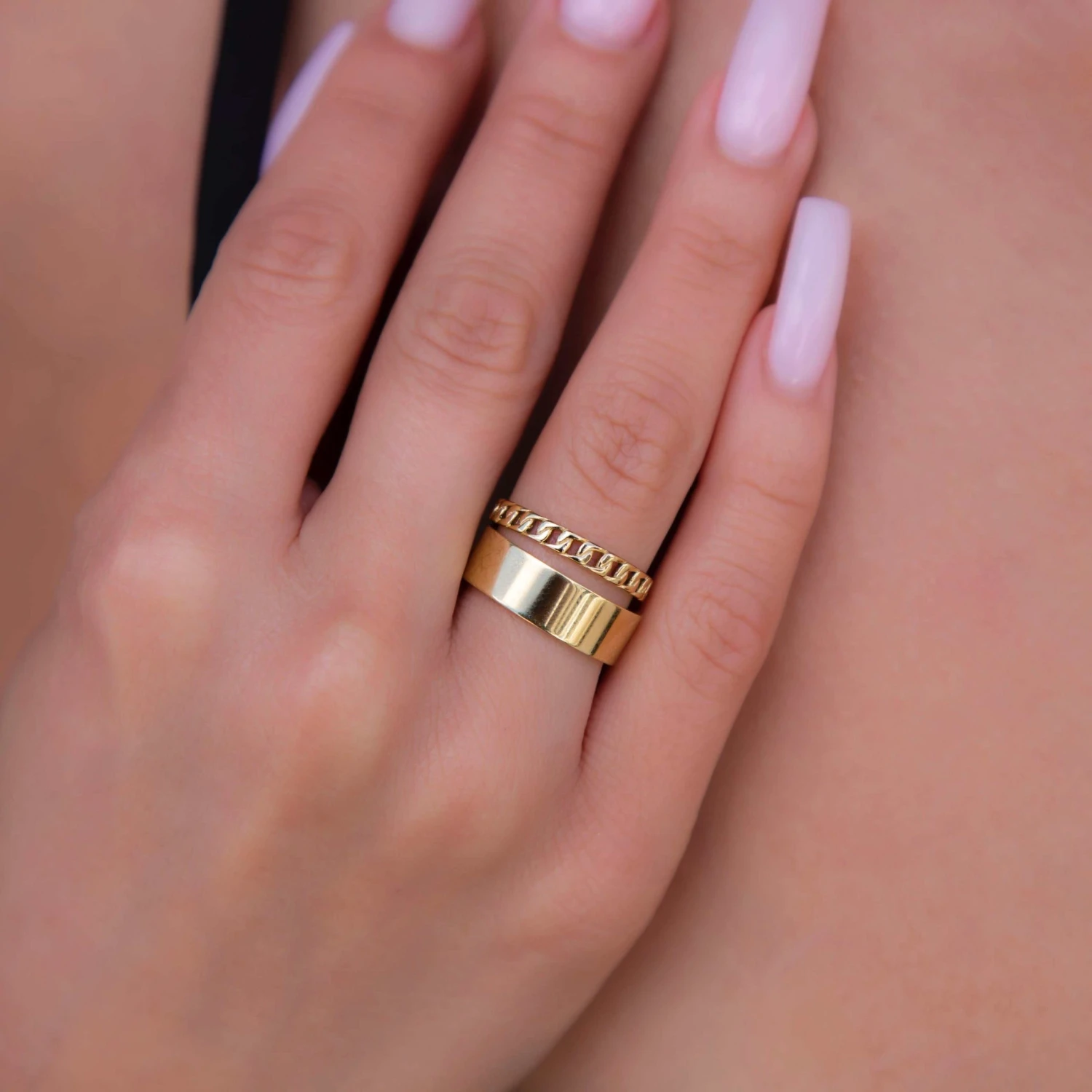 Introducing the Micro Cuban Band Ring, this ring is inspired by our Cuban Link chains. The micro chain link design makes this ring very easy to style. Our Micro Cuban Band Ring can be stacked or worn alone and is the perfect ring to make a subtle statement and combine with all your jewelry.