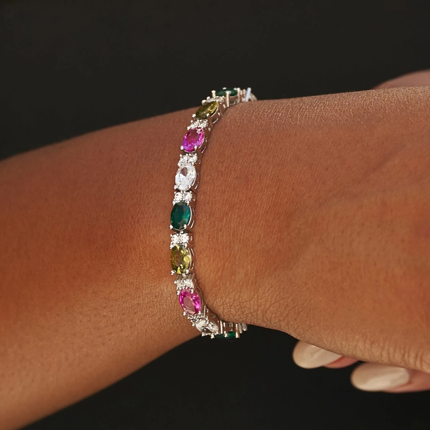 – (1) Multicolor Oval Cut Tennis Bracelet (6″, 7″, or 8″)