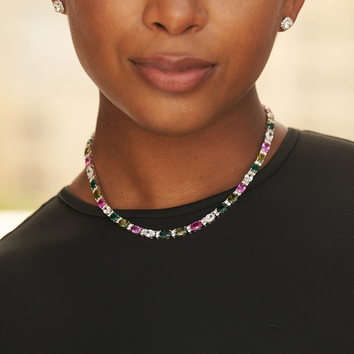 – (1) Multicolor Oval Cut Tennis Necklace (16″, 18″, or 20″)