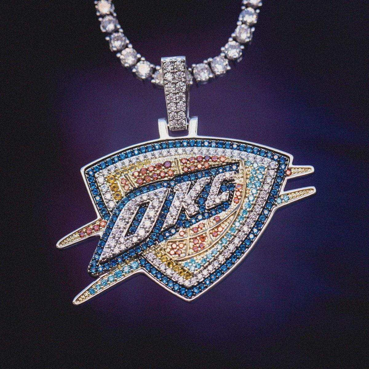 GLD has teamed up with the NBA to introduce the official NBA Team Pendants. This piece was meticulously crafted with multi-colored stones to accurately depict the logo of the Oklahoma City Thunder. Flex this NBA season with your official team pendant.