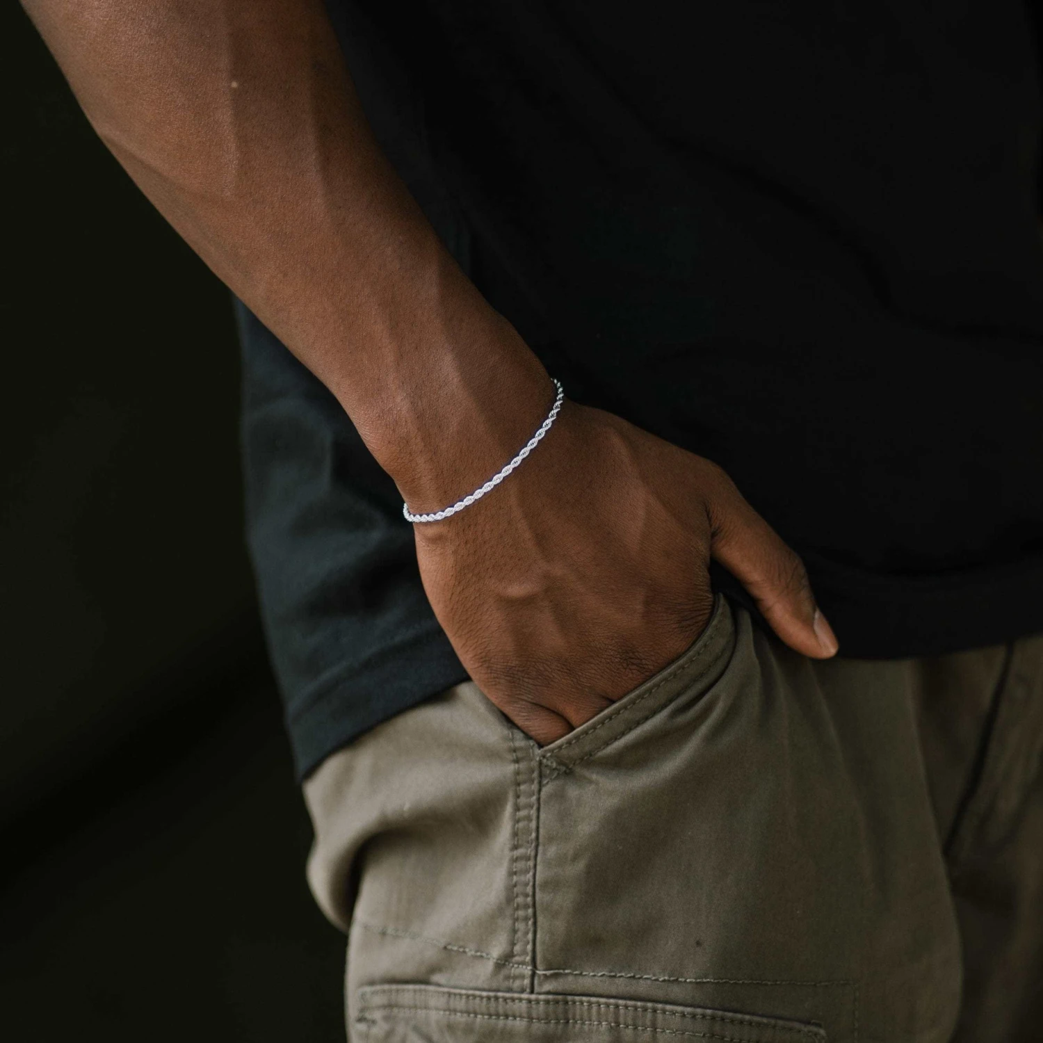 The Rope Bracelet in White Gold – 2mm features a bold yet simple twisted design that can be worn with any fit. Pick it up with a matching 2mm Rope Chain and it’s sure to take your look to the next level.
