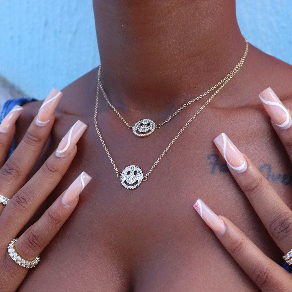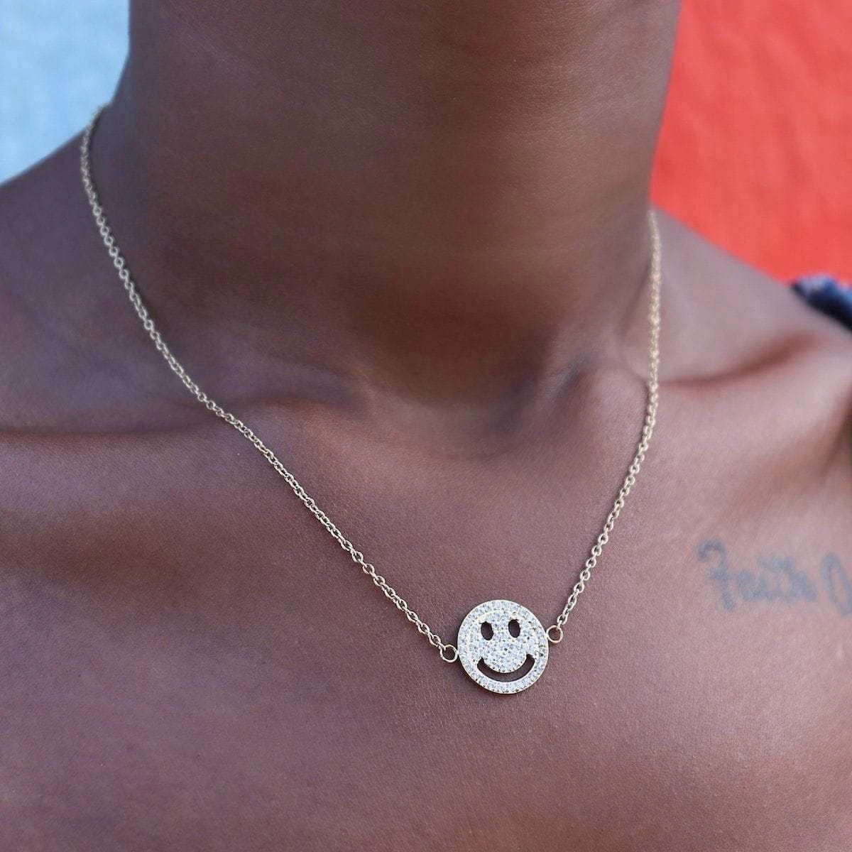 The Smiley Face Necklace is a bold yet feminine statement piece. This piece is guaranteed to complete any fit.