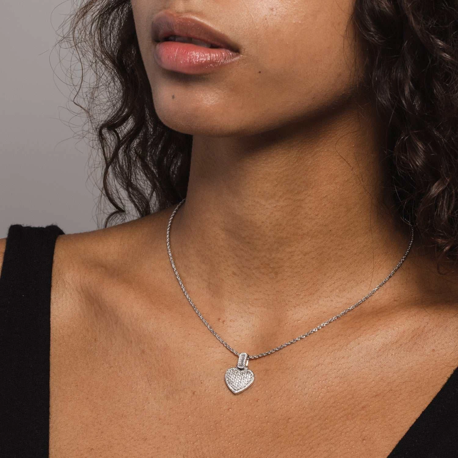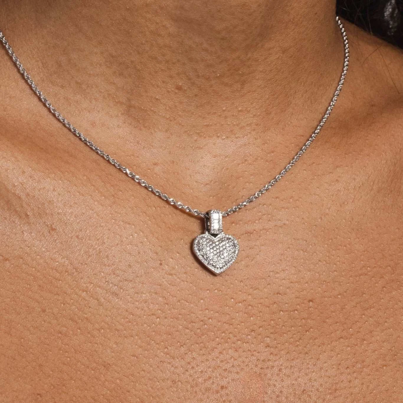 The Iced Heart Pendant in White Gold is a great addition to any collection! With its handset round cut stones, it’s sure to shine from any angle.