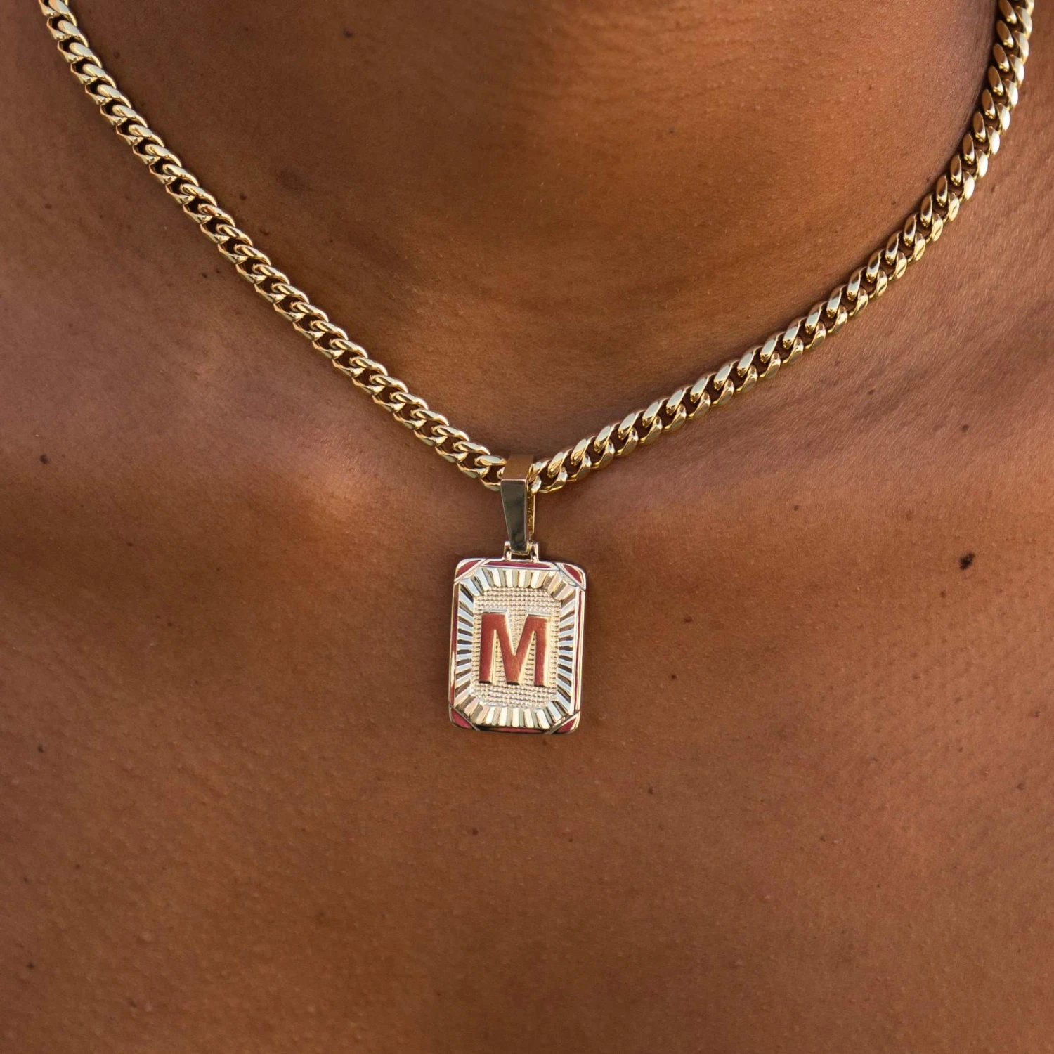 Introducing the Square Initial Pendant, a custom piece that can be personalized with your favorite letter. This 18k gold plated piece is a great gift that you can match with that special someone. The Initial pendant allows for one uppercase letter per pendant, if you’d like to include more than one you can stack two of these pendants on one chain. Paired with the Micro Cuban Necklace, they make a perfect match!