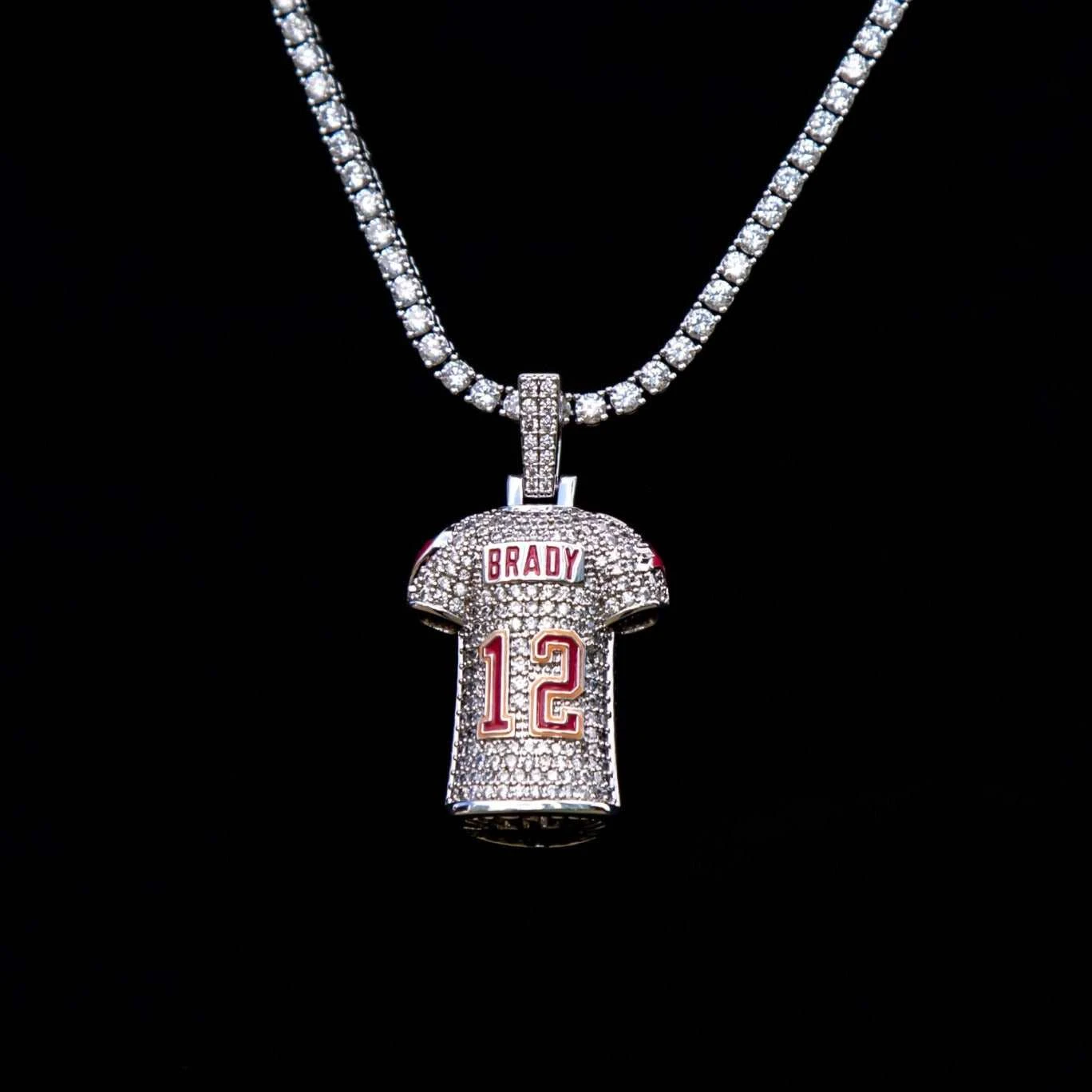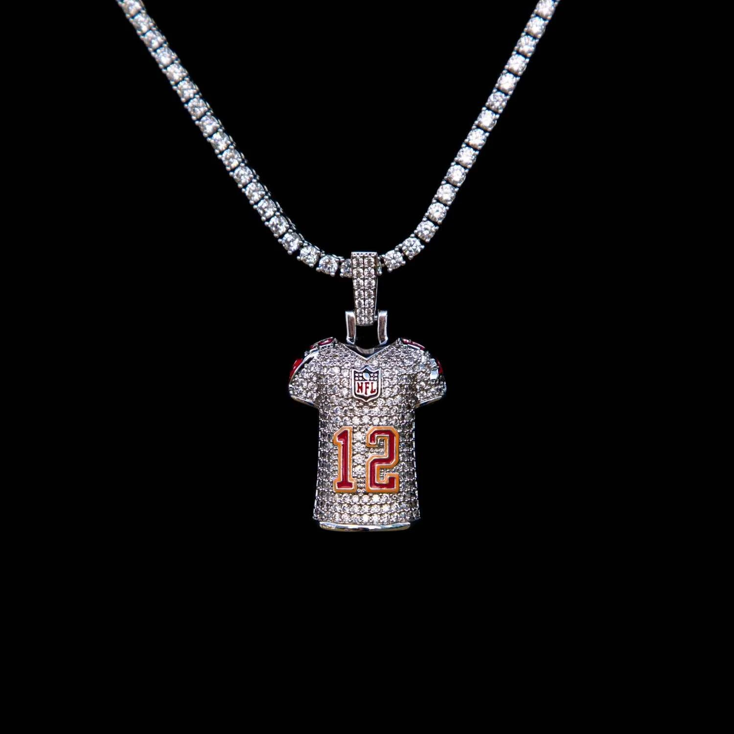 Last chance to copĀ the G.O.A.T Tom Brady’s Jersey Pendant.Ā GLD has teamed up with theĀ National Football LeagueĀ to introduce theĀ officialĀ NFLĀ Sculpted Jersey Pendant.Ā This piece was meticulously crafted with clear CZ stones andĀ 14k White Gold platingĀ to accurately depict the real life jersey of the 7 time Super Bowl Champion.Ā Flex your favorite player this season with the official #12 pendant!