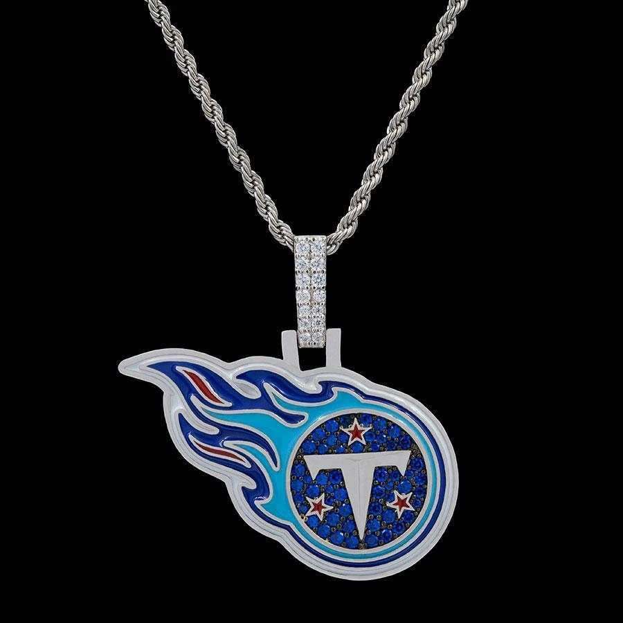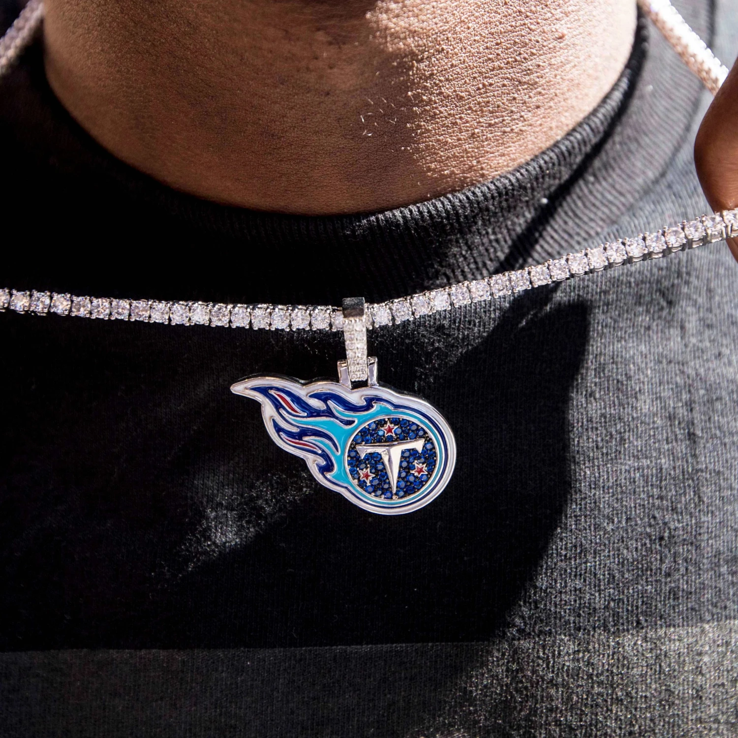 GLD has teamed up with the National Football League to introduce the official NFL Team Pendants. This piece was meticulously crafted with a cluster of multi-color hand-set stones and enamel to accurately depict the logo of the Titans. Flex this NFL season with the official pendant of the Tennessee Titans.