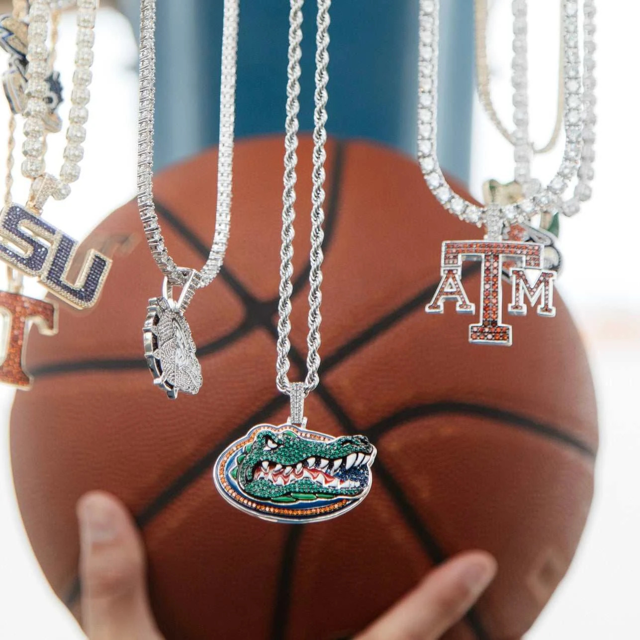 GLD has teamed up with the NCAA to introduce the official NCAA Team Pendants. This piece was meticulously crafted with maroon hand-set stones to accurately depict the logo of the Texas A&M University football team. Flex this season with the official Logo Pendant of your Texas A&M Aggies!