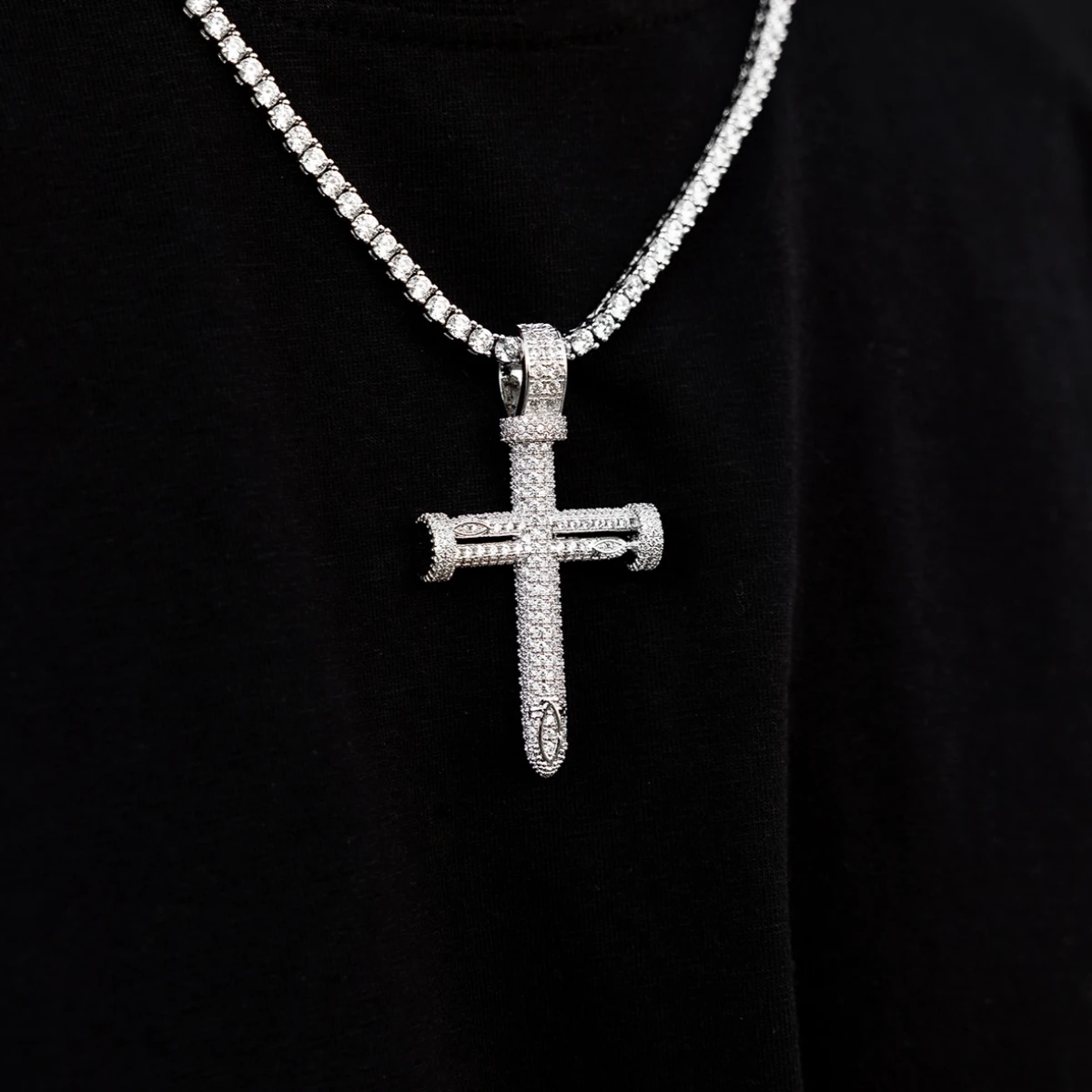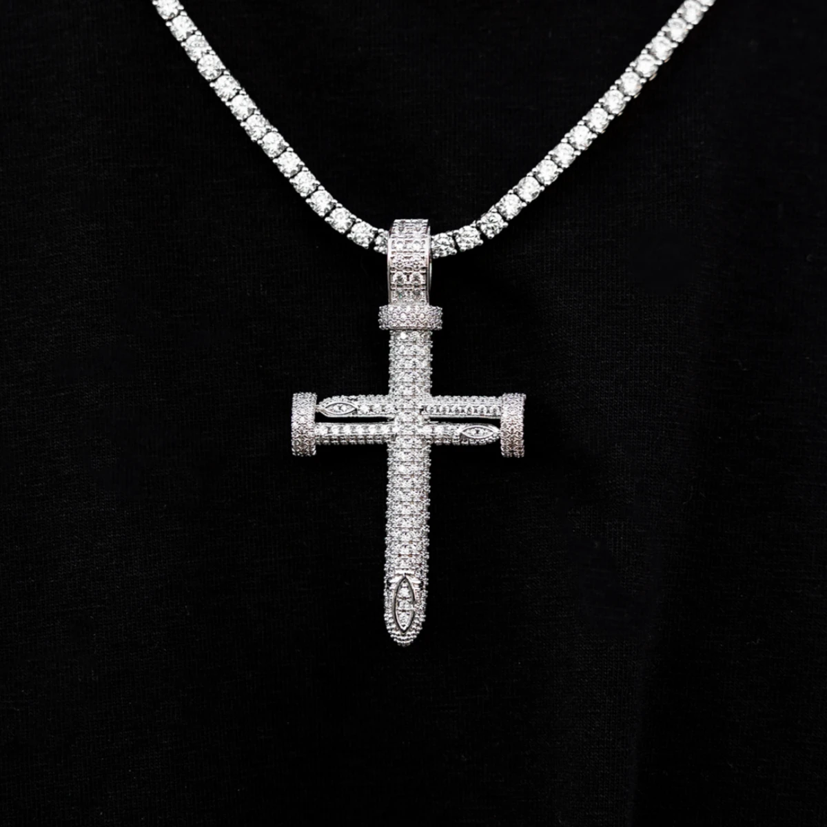 The Nail Cross, also known as “The Cross of Suffering,” is detailed with larger CZ Stones, intricately hand-placed to give the pendant a shine that will stand out from the crowd.
